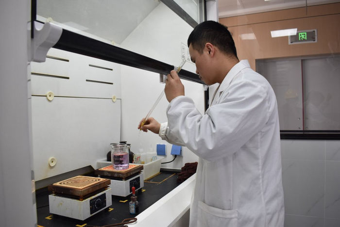 在贵州川恒子公司恒轩新能源材料有限公司实验室,实验员正在进行试验。李雪雪/摄