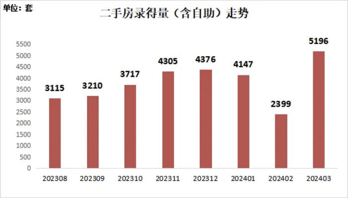 深圳市房地产中介协会(以下简称“深房中协”)监测数据显示,3月深圳二手房网签5196套,环比增长116.6%,同比增长5.1%,已突破5000套行业荣枯线标准。这是时隔3年,二手房月度网签量再次破5000套,上一次是2021年2月的5272套。过户方面,深圳二手住宅过户3840套,环比增长115%,同比微跌2.76%。