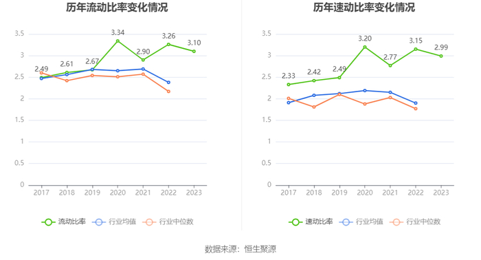 2023年,公司流动比率为3.10,速动比率为2.99。