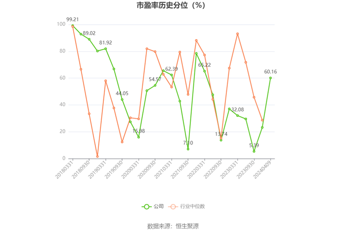 市盈率为负时,不显示当期分位数,会导致折线图中断。