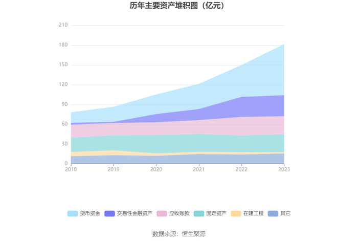 资产重大变化方面,截至2023年年末,公司货币资金较上年末增加60.57%,占公司总资产比重上升10.48个百分点;应收账款较上年末减少3.71%,占公司总资产比重下降3.87个百分点;交易性金融资产较上年末增加4.39%,占公司总资产比重下降2.80个百分点;固定资产较上年末增加9.18%,占公司总资产比重下降1.64个百分点。