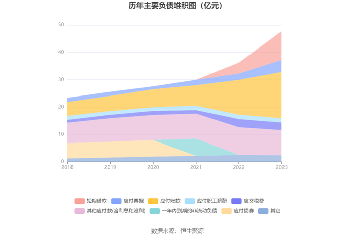 负债重大变化方面,截至2023年年末,公司短期借款较上年末增加160.77%,占公司总资产比重上升3.08个百分点;应付账款较上年末增加33.42%,占公司总资产比重上升0.86个百分点;应付票据较上年末增加89.72%,占公司总资产比重上升0.89个百分点;其他应付款(含利息和股利)较上年末减少9.76%,占公司总资产比重下降1.71个百分点。