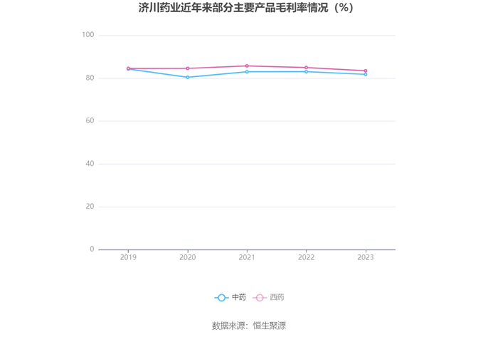 分产品看,中药、西药2023年毛利率分别为81.79%、83.45%。