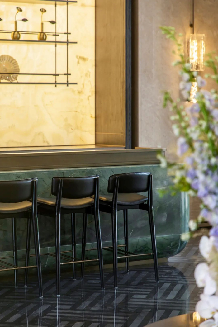 会所大堂里,一座颇有格调的水吧台,是绿野仙踪双曲面整石打造的。空气中飘荡着的香氛,是来自MAD香水品牌的。钢琴爵士乐bloom的美妙旋律,让人恍如置身高奢酒店的会所。