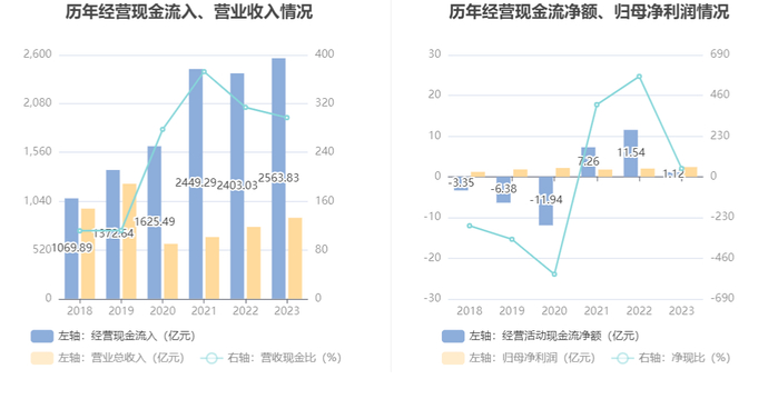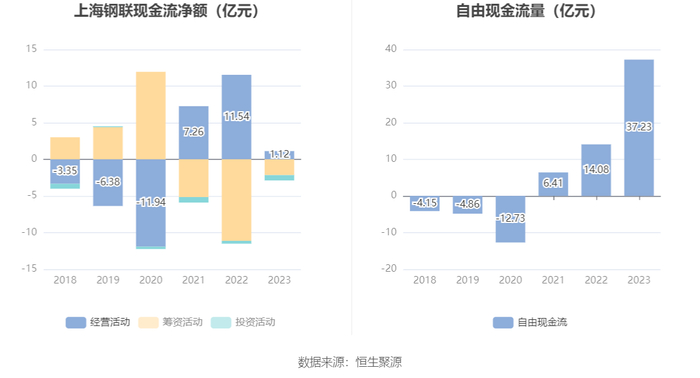 进一步统计发现,2023年公司自由现金流为37.23亿元,相比上年同期增长164.39%。