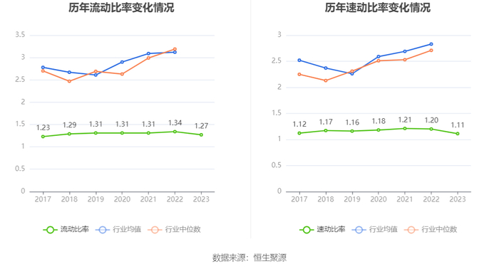 2023年,公司流动比率为1.27,速动比率为1.11。