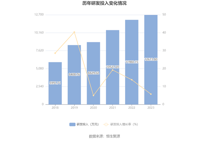 2023年全年,公司研发投入金额为1.27亿元,同比增长5.79%;研发投入占营业收入比例为0.15%,相比上年同期下降0.01个百分点。此外,公司全年研发投入资本化率为0。