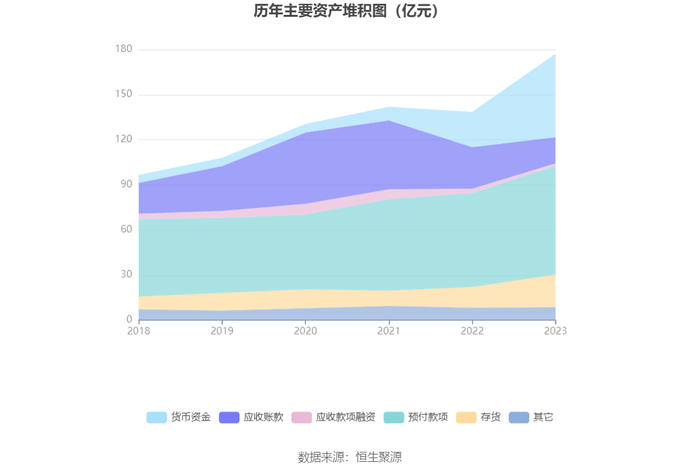 资产重大变化方面,截至2023年年末,公司货币资金较上年末增加137.82%,占公司总资产比重上升14.48个百分点;应收账款较上年末减少37.26%,占公司总资产比重下降10.18个百分点;预付款项较上年末增加15.73%,占公司总资产比重下降4.32个百分点;存货较上年末增加58.86%,占公司总资产比重上升2.37个百分点。