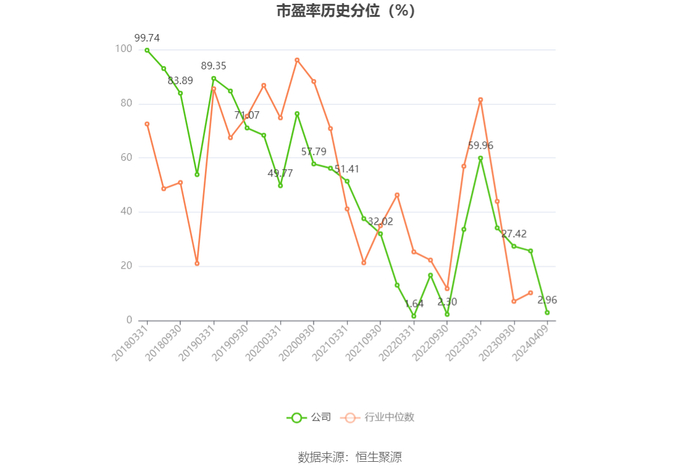 市盈率为负时,不显示当期分位数,会导致折线图中断。