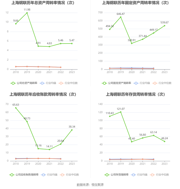 营运能力方面,2023年,公司公司总资产周转率为5.47次,上年同期为5.46次(2022年行业平均值为0.44次,公司位居同行业1/103);固定资产周转率为539.67次,上年同期为449.17次(2022年行业平均值为12.57次,公司位居同行业1/103);公司应收账款周转率、存货周转率分别为38.34次、48.24次。