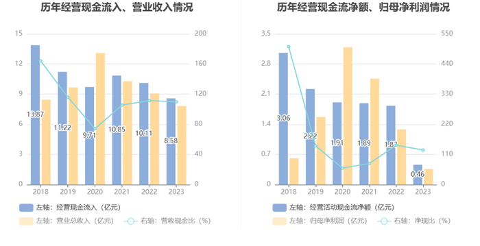 2023年,公司营业收入现金比为109.77%,净现比为125.98%。