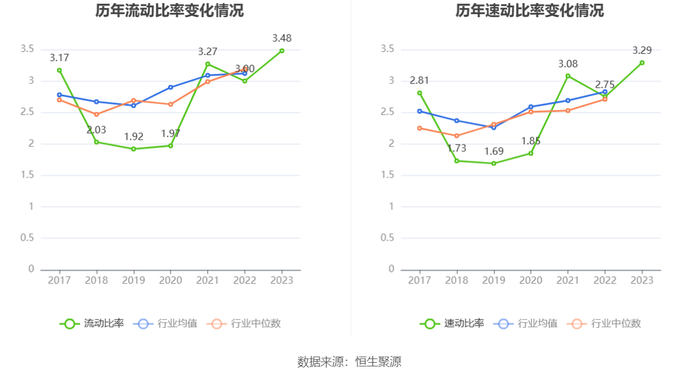 2023年,公司流动比率为3.48,速动比率为3.29。