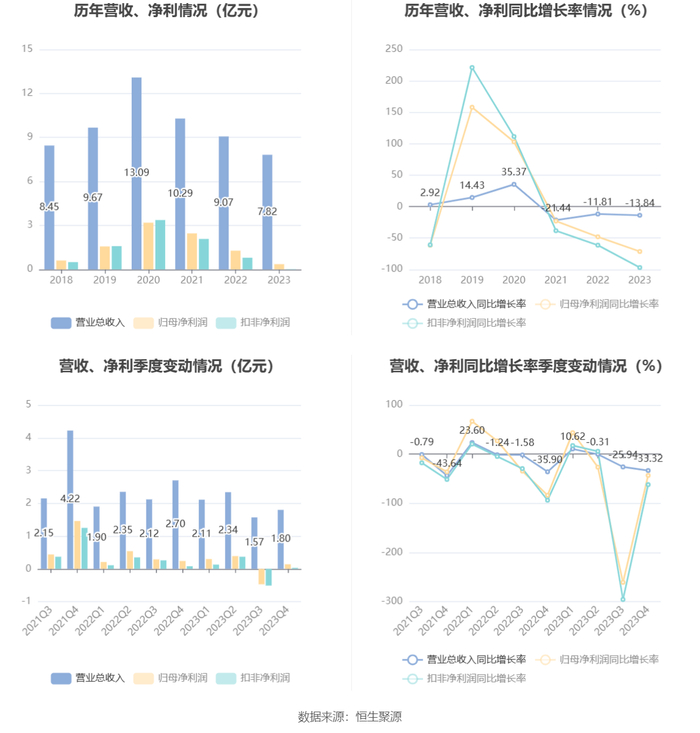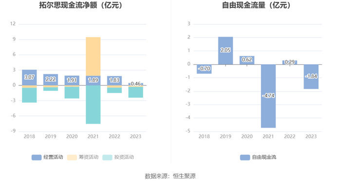 进一步统计发现,2023年公司自由现金流为-1.84亿元,上年同期为0.29亿元。
