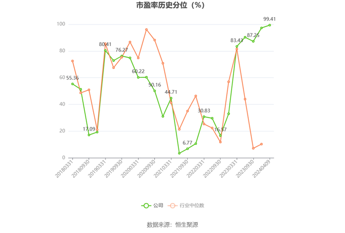 市盈率为负时,不显示当期分位数,会导致折线图中断。