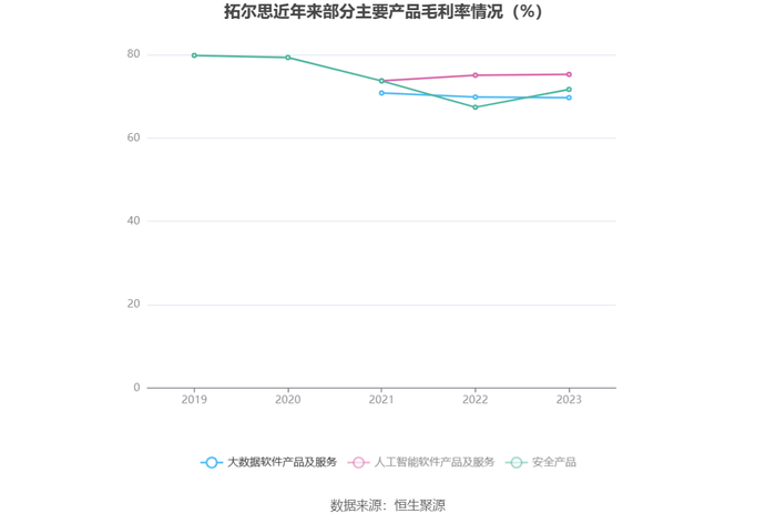 分产品看,大数据软件产品及服务、人工智能软件产品及服务、安全产品2023年毛利率分别为69.69%、75.27%、71.68%。