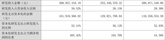 2023年全年,公司研发投入金额为3.09亿元,同比增长20.95%;研发投入占营业收入比例为39.52%,相比上年同期上升11.37个百分点。此外,公司全年研发投入资本化率为52.41%。