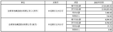 2023年根据白银有色董事会和股东大会审议批准,公司向关联方中信银行股份有限公司兰州分行申请综合授信额度人民币15亿元,最终获中信银行股份有限公司总行批准6亿元。