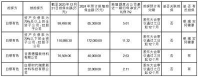 2024 年主要担保对象为全资子公司、控股子公司及合营或联营企业,白银有色对全资子公司、控股子公司拥有被担保方的控制权,对合营或联营企业,白银有色主要按照股权比例提供担保且被担保方提供反担保,担保风险应可控,符合白银有色的业务发展和整体利益。白银有色将在提供担保前采取必要措施核查被担保人的资信状况及偿还债务能力,并在担保期限内持续关注被担保人的经营状况,审慎判断担保事项是否存在逾期的风险,保障公司的合法权益。