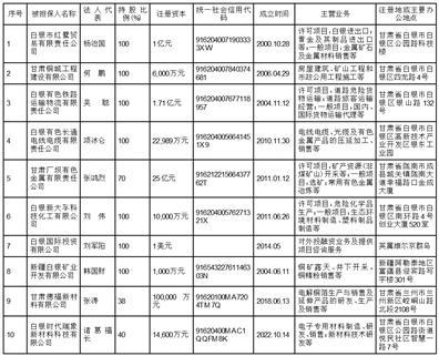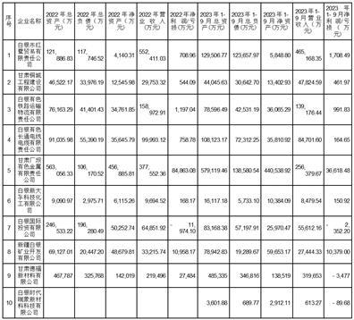 注: 1.甘肃铜城房地产开发有限公司、白银有色嘉华园林工程有限公司、白银有色嘉合物业服务有限公司为白银有色产业集团有限责任公司下属子公司。2.中信重工机械股份有限公司、中信银行股份有限公司财务数据主要来自其《2022年年度报告》和《2023年第三季度报告》3. 兰州兰石集团有限公司财务数据主要来自《兰石重装关于现金收购兰州兰石超合金新材料有限公司100%股权暨关联交易的公告》(公告编号:临 2023-081)交易对方(关联方)基本情况部分。4.其他公司财务数据主要由关联方提供。