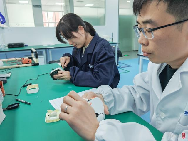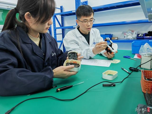 束小康(右)在检测中。