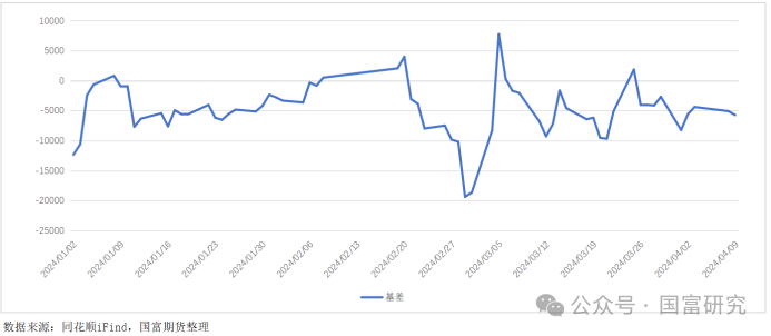 2024年4月9日碳酸锂主力合约基差数据为-5750,低于全年基差均值,处于历史低位