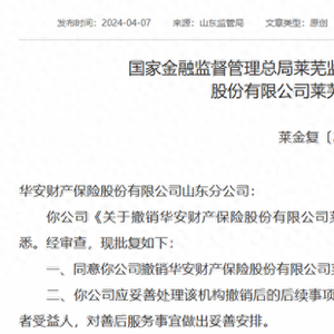 近一年持续“瘦身”,华安财险山东第三家分支机构关停