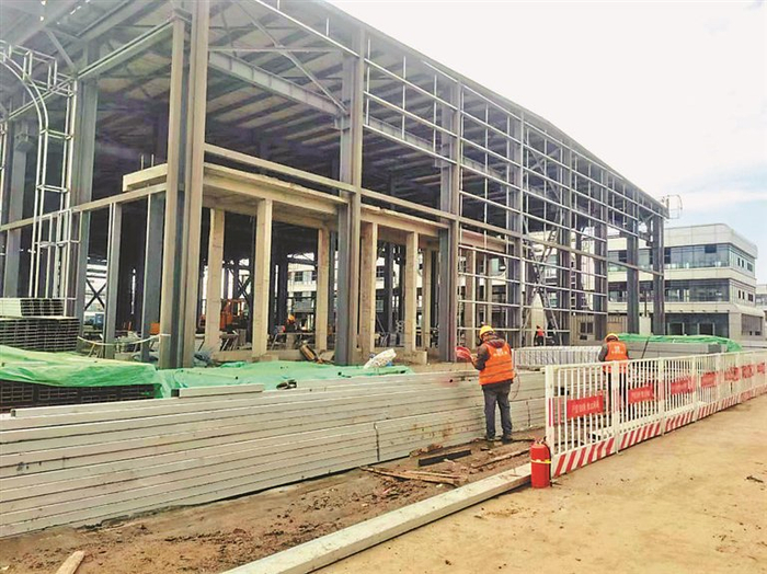 据姚军介绍,该项目共分两期建设,一期主要建设钢贸交易区,有30栋楼,目前工程建设完成近七成;二期为标准化厂房建设,目前1号标准化厂房钢结构搭建已完成八成、3号标准化厂房钢结构搭建已完成六成。