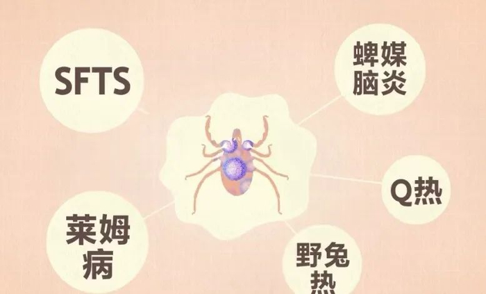 这还不是最可怕的,真正让人“谈蜱色变”的是它通过吸血传播很多人兽共患的疾病190余种,比如:蜱媒脑炎、Q热、SFTS(发热伴血小板减少综合征)等。