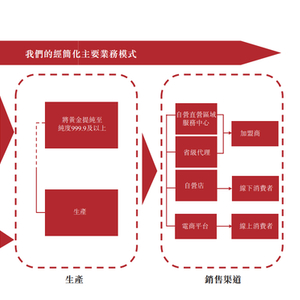 公司的全价值链运营将黄金珠宝产业的各个关键环节相结合,从原材料采购及提纯、研发、产品设计、制造到通过多元化销售渠道零售。