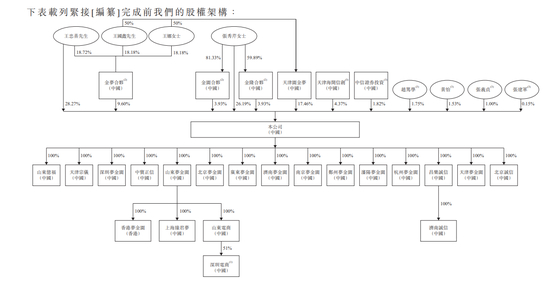 梦金园的股权结构较为集中,截至最后实际可行日期,王忠善、张秀芹、王国鑫、王娜、金梦合伙、金园合伙、金隆合伙以及天津园金梦作为一组控股股东,共同有权行使公司注册资本总额约89.39%的表决权。
