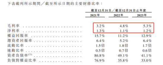2021年至2023年,梦金园的毛利率分别为3.2%、4.8%、5.3%。公司表示:“于往绩记录期间,由于销售量增加、黄金价格波动及黄金采购与销售时间差的综合影响,黄金产品的毛利率呈持续上涨趋势。”