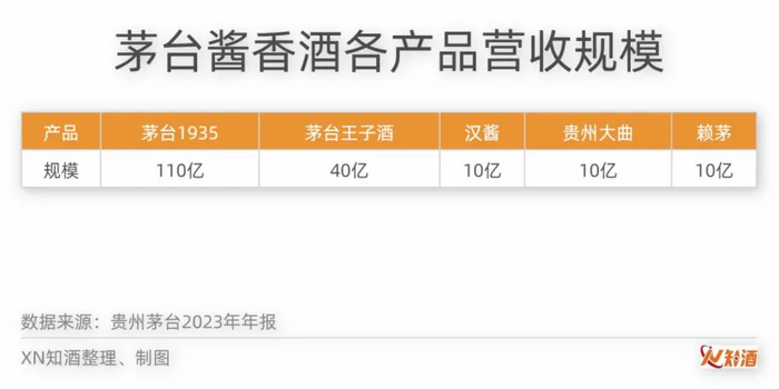 再次,茅台酒形成了“千亿、百亿、十亿”群星闪耀的超级品牌矩阵。在飞天茅台的带动下,形成了百亿茅台1935、40亿茅台王子酒和汉酱、贵州大曲、赖茅等一众10亿单品。