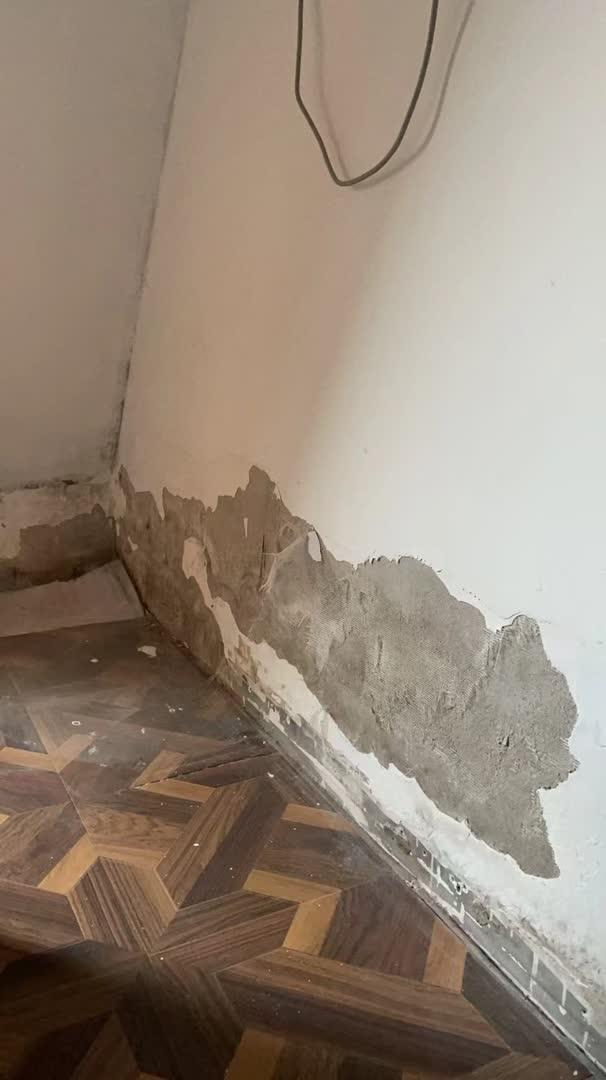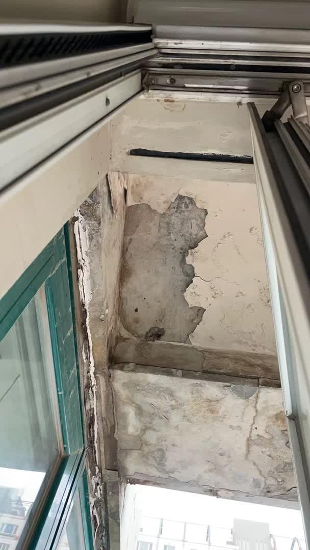蒲安西里12号楼外下水道位置的漏雨痕迹