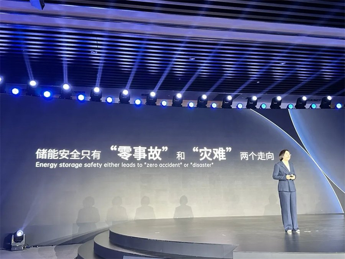 而针对行业所极为关注的安全问题,许金梅表示,储能安全只有“零事故”和“灾难”两个走向,宁德时代储能安全设计理念是前期的预防而不是后期的防护。据其介绍,宁德时代“天恒”储能系统的电芯单体失效率能达到PPB等级。