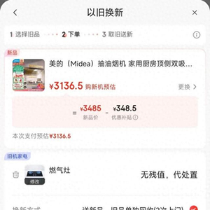 而像油烟机、灶具等厨卫家电大多数更是“无残值”,也就是0元。以燃气灶为例,在平台参与以旧换新时,就会显示“无残值,代处置”,即可以免费上门拆机搬运,但无旧机款发放。
