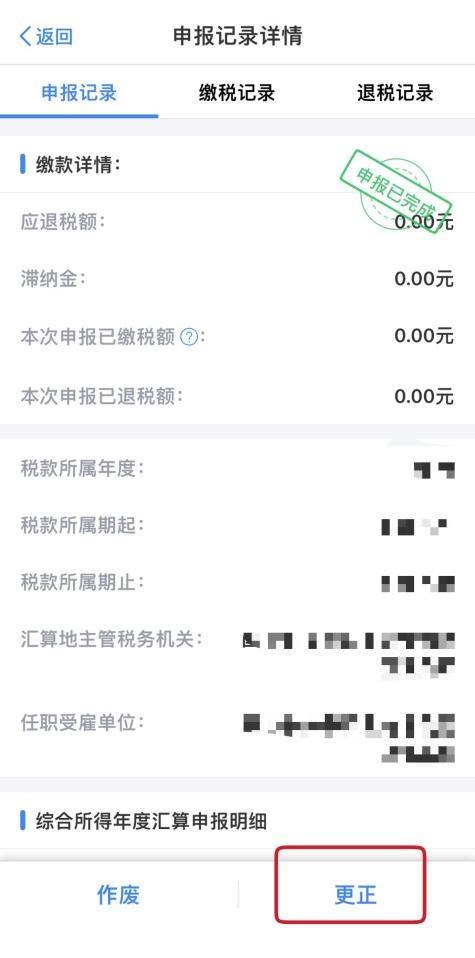 如果您已经完成年度汇算申报,但未申请退税或已申请退税但退税流程还在税务机关受理、审核的环节,此时发现申报数据错误需要更正,您可以通过【办&查】,点击【综合所得年度汇算】—【查看历史申报记录】