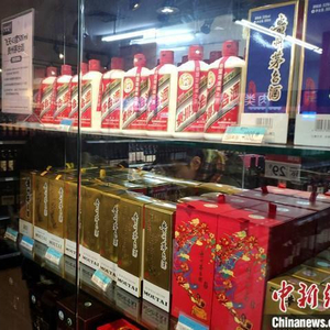 资料图:一超市贵州茅台酒专柜。 中新社记者 吕明 摄
