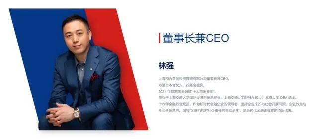 公开资料显示,林强,和合期货有限公司董事、上海和合首创投资管理有限公司董事长兼CEO。林强毕业于上海交通大学国际经济与贸易专业,获得上海交通大学EMBA硕士学位、北京大学DBA博士学位。林强拥有十多年金融行业从业经验,曾任职于国泰人寿、国金证券(600109)、国金基金等大型金融机构。2021年,林强获选“陆家嘴(600663)金融城十大杰出青年”。