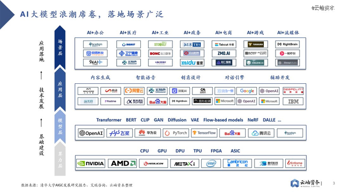 目前,AI大模型+的浪潮正在席卷各行各业,展现出无限可能。在各类算力模型的基础上,业界已开发出了内容生成、智能语音、创意设计、对话引擎和辅助开发等功能,并应用于办公、医疗、工业、政务、电商、游戏、流媒体等多元化场景。