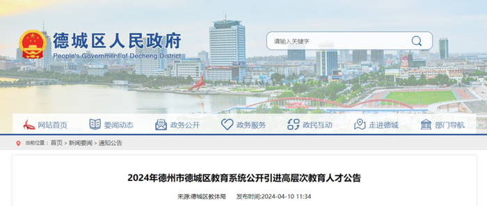 教育系统高层次教育人才引进相关信息在德城区政府门户网站(www.decheng.gov.cn)发布。
