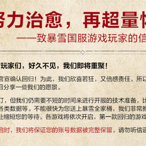 信中,网易还表示,对于国服缺席的这一段时间内,玩家们错过的活动与福利,双方将尽可能为游戏玩家提供重新获得它们的机会。