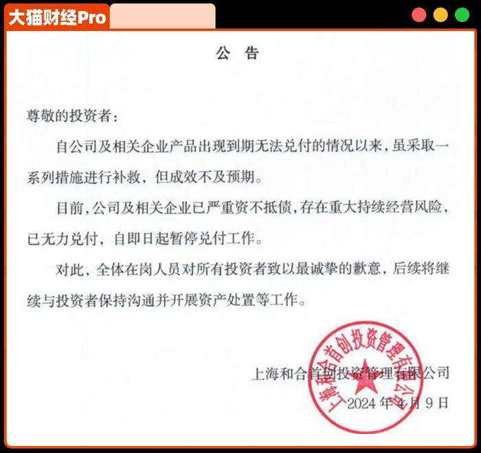 4月9日,这公司发了个公告,意思就是说过去半年我们努力还钱了,现在实在还不起了,所以决定不还了。