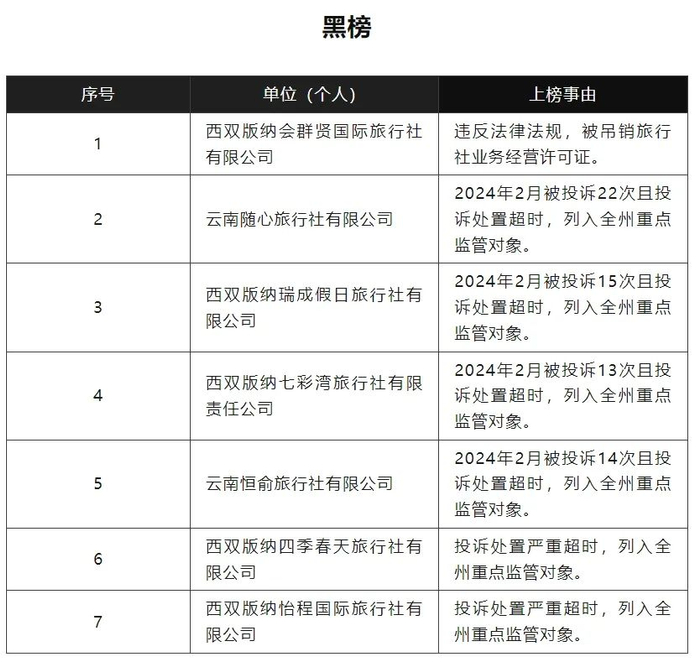 云南多地文旅局发布旅游“红黑榜”