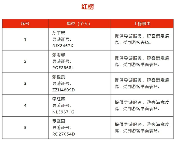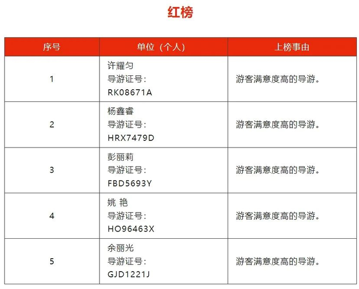 第二十期旅游“红黑榜”