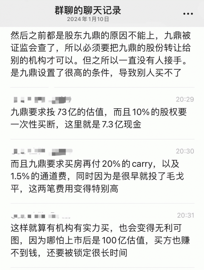 而据聚美丽在1月份获得的消息,毛戈平在撤回IPO申请的同时,就在做“拆除九鼎股权”的动作。九鼎报价73亿估值对其持有的10%股权进行“叫卖”。