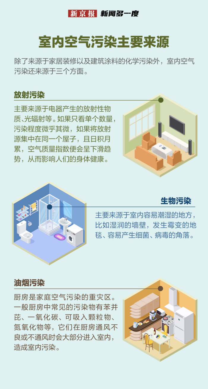 中国室内装饰协会副会长,中国室内装饰协会室内环境监测工作委员会秘书长宋广生表示,除了来源于家居装修以及建筑涂料的化学污染外,室内空气污染还来源于三个方面。
