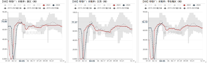 印染开工持续提升。华东开机率76.19%(+1.91%)。其中浙江75.00%(+2.5%),江苏77.37%(+1.32%)。
