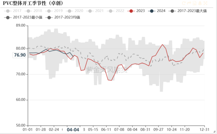 本周PVC粉整体开工率76.9%,环比下降1.64个百分点;其中电石法PVC粉开工率79.56%,环比下降0.54个百分点;乙烯法PVC粉开工68.95%,环比下降4.93个百分点。
