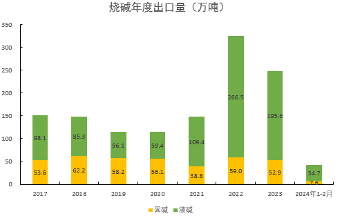 出口欧洲大幅降低。欧洲至能源危机结束,氯碱供应回升,其自身需求也弱,欧洲烧碱库存累库,欧洲由2022年的进口转为出口。