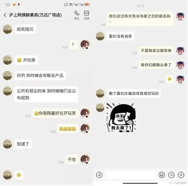 比如2022年茶饮品牌“沪上阿姨”和乙女游戏“光与夜之恋”开启联名活动,旨在借跨界实现用户拉新。可活动官宣仅过了3个小时,便被游戏官方解约了。游戏方在官微公开表示,沪上阿姨奶茶店员工辱骂玩家和游戏男主,用诸如“寡妇诈骗游戏”等不当言论来评价游戏,以及存在偷跑物料、传播不实信息行为,触及了项目组的底线,因此就此暂停合作。随后,沪上阿姨在微博上发布了道歉声明,不过网友们对此表示并不接受,并“怒怼”其道歉声明不痛不痒,试图推卸责任。